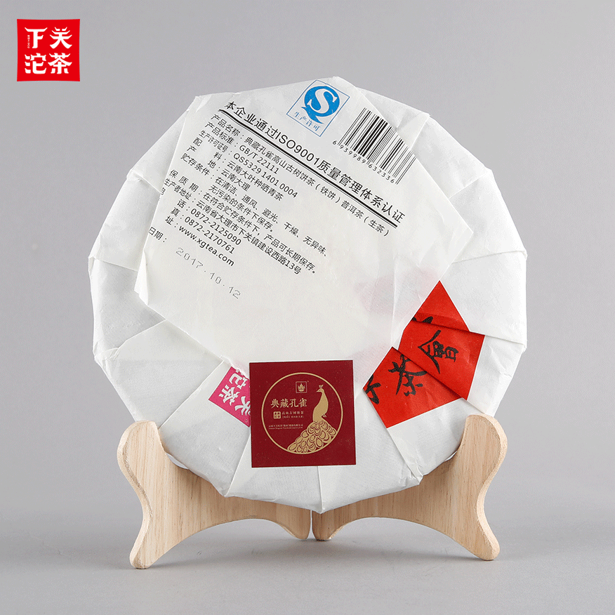 357克紙袋提盒裝典藏孔雀高山古樹餅茶 普洱茶(生茶)2017