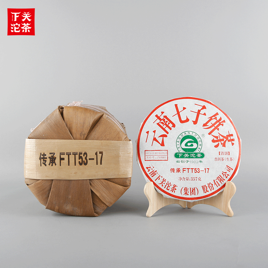 357克筍葉竹籃編織袋裝傳承FT53-17 云南七子餅茶(鐵餅) 普洱茶(生茶)2017