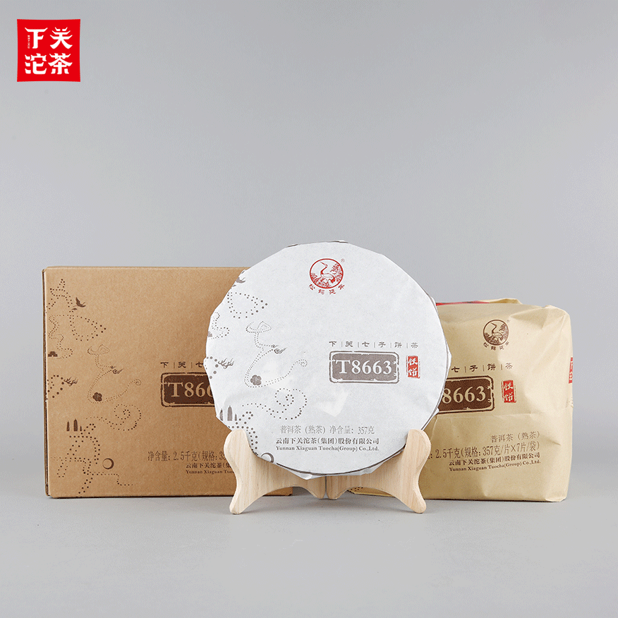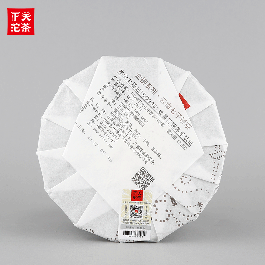 357克紙袋提盒裝T8663下關(guān)七子餅茶(鐵餅)普洱茶(熟茶)2017