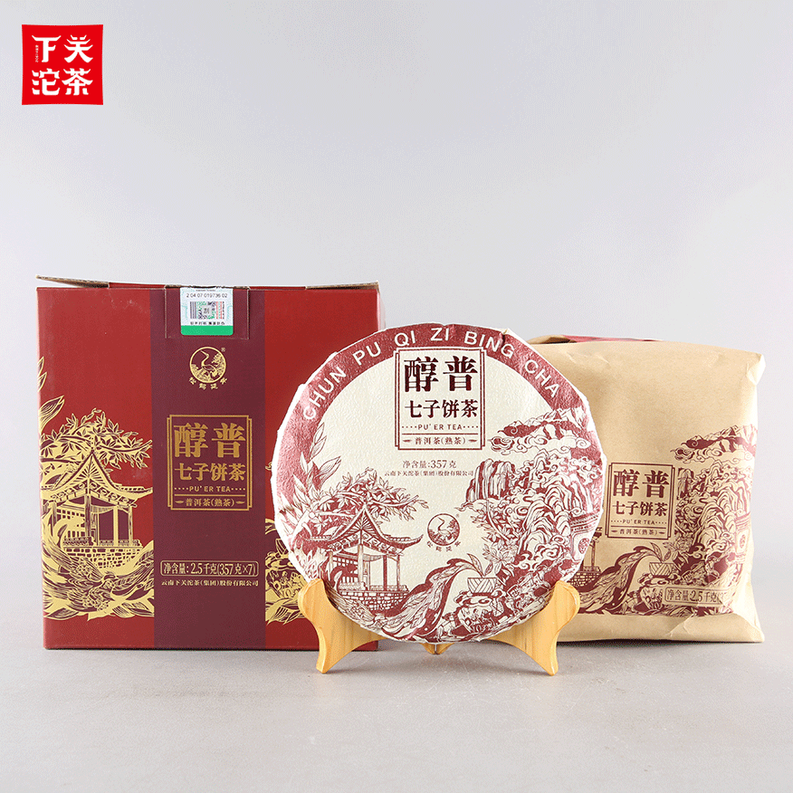 357克紙袋提盒裝醇普七子餅茶 普洱茶(熟茶)2021